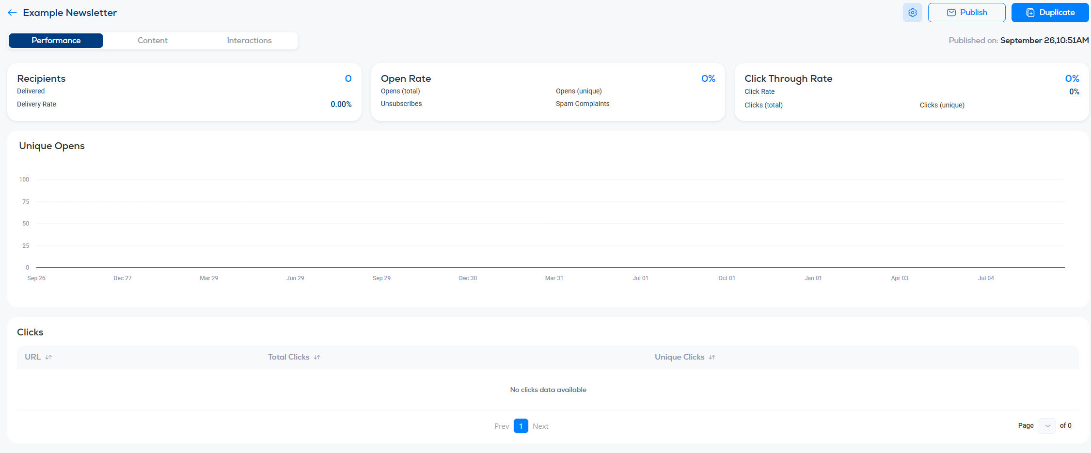 If you select the Interactions tab, you can view the activities of specific subscribers on that newsletter.