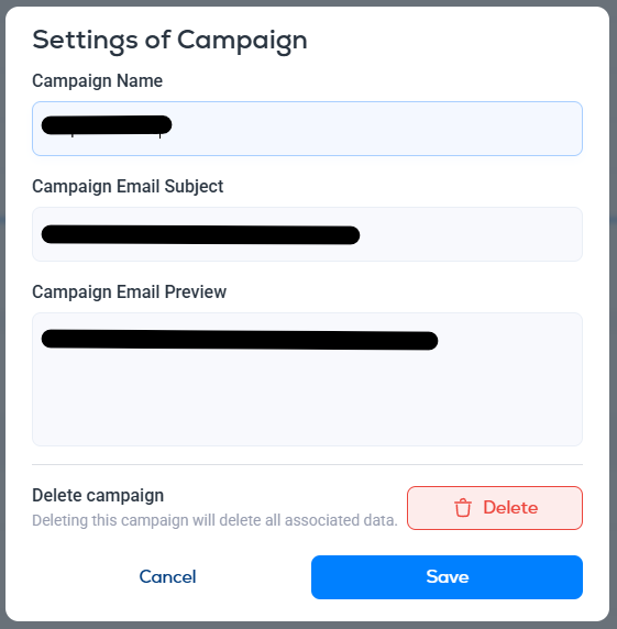 In order to delete a campaign, click the Gear icon and select "Delete."